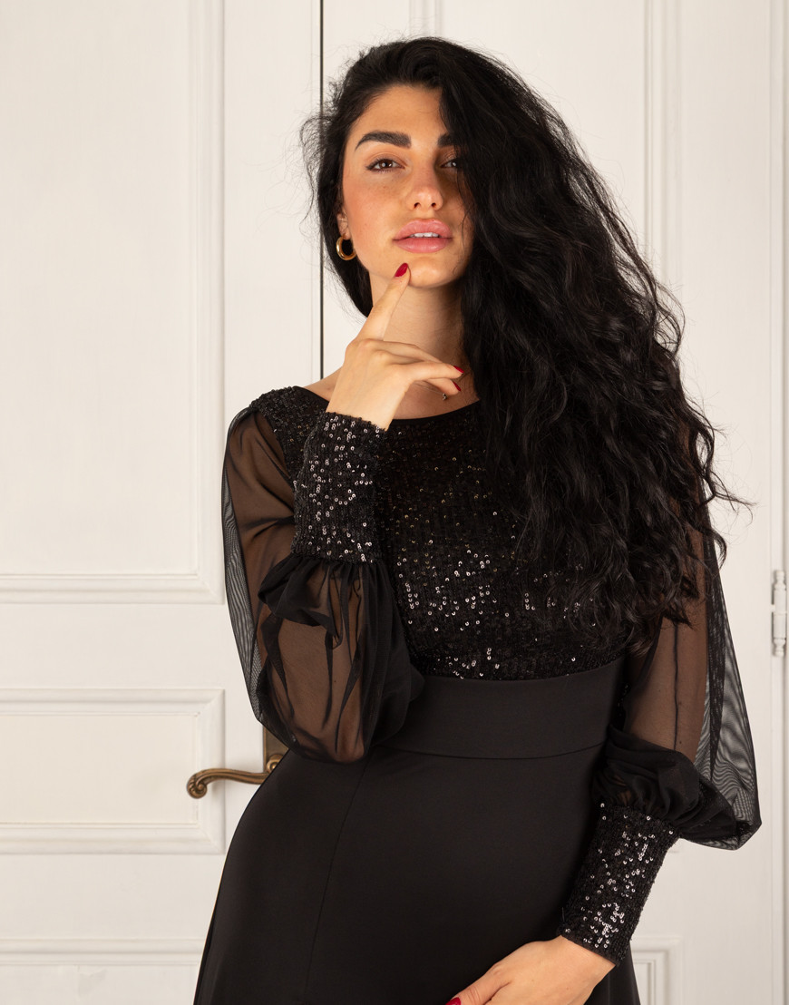 Tutti i capi RossaSpina sono creati per rendere unica ogni donna. Abito tubino in comodo ciniglia monocromatica, con spallina larga e scollo a cuore. Nella parte frontale e nella parte delle spalle è ricoperto di tulle nero, decorato nella parte frontale con pizzo color oro/nero (opzionale, si può richiedere anche senza l'applicazione). Di raffinata fattura è ottimo per il tango argentino, ma saprà renderti unica ad ogni occasione come serate cocktail e party chic!